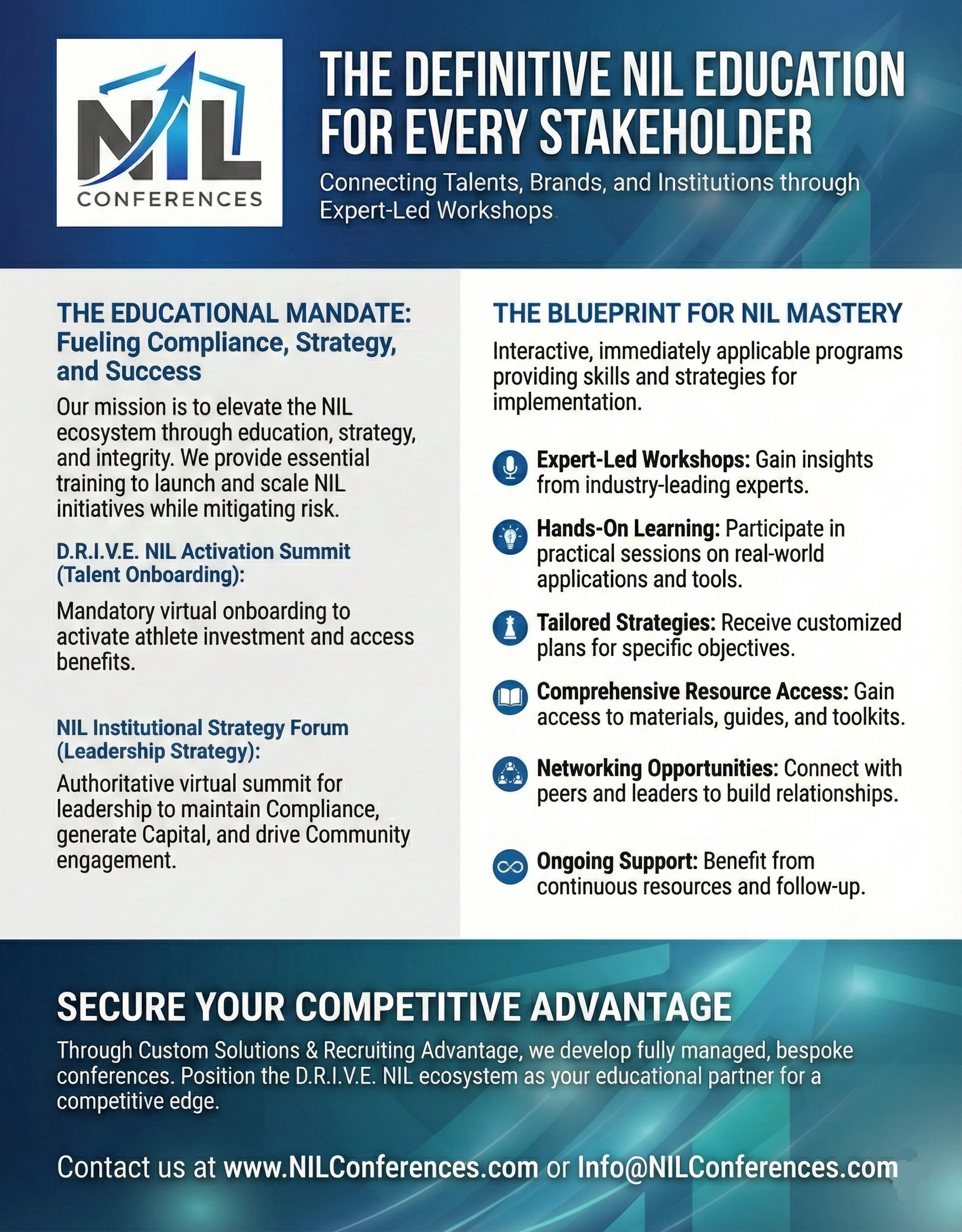 NIL Equip Flyer Spirited Fan Flyer NILift Flyer NIL Forward Flyer NIL Conferences Flyer Coinfluential Flyer NIL Bundle Flyer Premium Resources Flyer